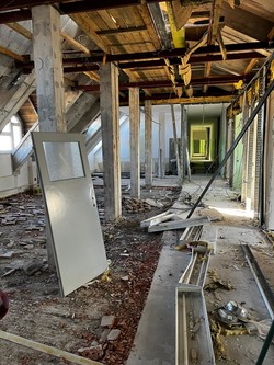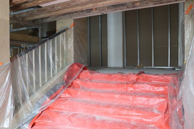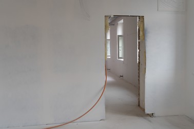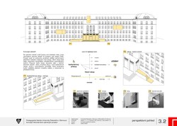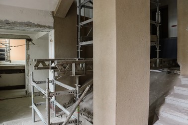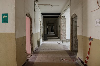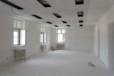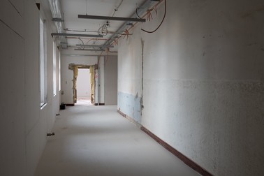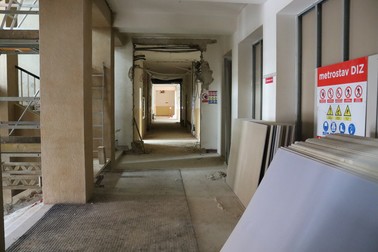 Součástí návrhu rekonstrukce chodeb bude sádrokartonová předstěna určená pro budoucí využití (např. k provedení nových instalací silnoproudu, rozvodu vody apod., případně k osazení nábytkovými stěnami). Rekonstrukce se dotkne všech podlaží objektu. V dotčených chodbách budou instalovány nové dveře. Do všech prostor objektu bude nově doplněn elektronický požární systém a evakuační rozhlas. Současně bude doplněno do středové části objektu požárně bezpečnostní zařízení odvodu kouře a tepla.