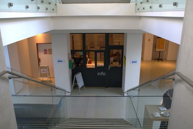 - Pro vstup do budovy lze využít vchody do nové části budovy (ze dvora budovy); západní křídlo budovy je také přístupné vchodem z ul. Jiřího z Poděbrad (vstup tímto vchodem je umožněn pouze na zaměstnaneckou/studentskou kartu), případně vchodem z vnitrobloku budovy (západní dvůr/atrium objektu). Všechny vchody jsou označeny.