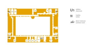 Plánek výukových prostor v objektu Centrum Hanácká kasárna