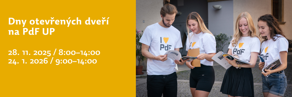 Dny otevřených dveří v akademickém roce 2025/2026 se blíží! Možnost osobně navštívit nejen Olomouc, ale i Pedagogickou fakultu UP budou mít zájemci a zájemkyně o studium u nás hned ve dvou termínech. První z nich proběhne už v pátek 28. listopadu 2025, druhý den otevřených dveří je pak naplánován na sobotu 24. ledna 2026. Těšíme se na Vás!