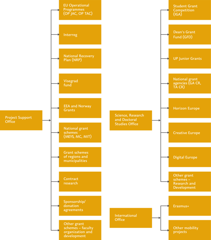 Responsibility for the submission of grant applications and the related administrative agenda at our faculty lies with the relevant units as shown in the diagram below.