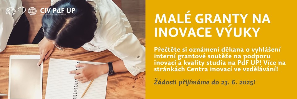 Děkan Pedagogické fakulty Univerzity Palackého v Olomouci prostřednictvím Centra inovací ve vzdělávání PdF UP (dále jen CIV) opět vyhlašuje grantovou soutěž určenou akademickým pracovníkům PdF UP zaměřenou na rozvoj inovací a zvyšování kvality studia (výuky) na PdF UP v roce 2025.