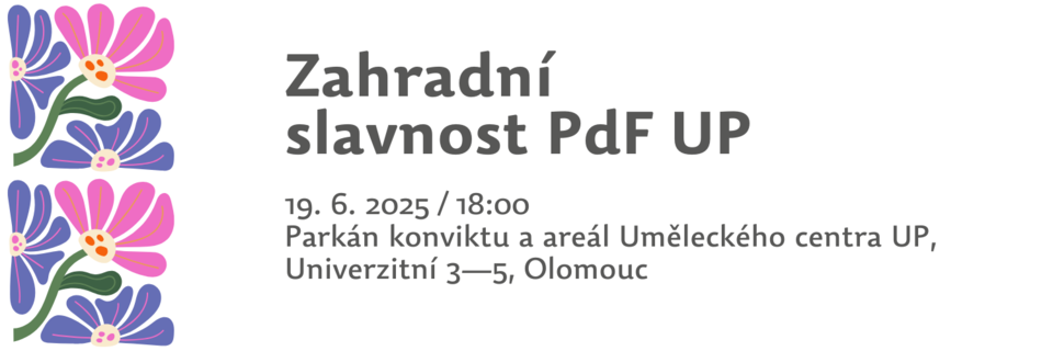 Parkán konviktu a areál Uměleckého centra UP 19. června 2025 oživí Zahradní slavnost Pedagogické fakulty UP! Setkání členů akademické obce se zaměstnanci, absolventy a přáteli naší fakulty bude doprovázeno živou hudbou. Neváhejte a vyzvedněte si svoji vstupenku co nejdříve, jejich počet je omezen!