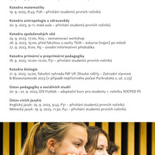 Pedagogická fakulta přivítá studenty a studentky prvních ročníků. Přijde je pozdravit vedení fakulty i zástupci studentů, na programu budou užitečné informace, aktuální nabídka kurzů a tipy na příjemné studium v Olomouci.