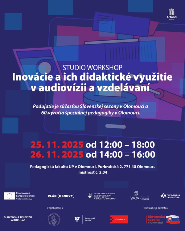 Pozývame Vás na 2-dňový STUDIO WORKSHOP v Olomouci. Vyskúšajte si ozvučenie či rozpohybovanie výtvarného diela pomocou umelej inteligencie, staňte sa súčasťou inovácií v audiovízii a prepojte sa so Slovákmi, žijúcimi alebo študujúcimi v zahraničí!