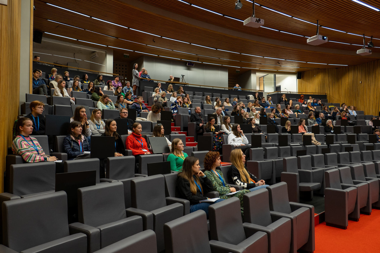 Následující hodiny prvního dne konference byly vyplněny odbornými příspěvky přednesenými domácími i zahraničními účastníky, stejně tak workshopem pořádaným pedagogy katedrou aplikovaných pohybových aktivit FTK UP a filmovým představením Tloskov Fiction doprovázeným besedou s herci.