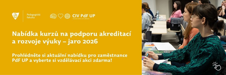 Pedagogická fakulta Univerzity Palackého připravila na jarní měsíce sérii vzdělávacích workshopů a školení zaměřených na rozvoj vysokoškolské výuky a podporu akademických pracovníků. Cyklus osmi odborných setkání organizují Centrum celoživotního vzdělávání a Oddělení pro vnější vztahy a inovace PdF UP. Program je určen především vyučujícím, didaktikům, garantům studijních programů i dalším zaměstnancům fakulty, kteří se podílejí na přípravě reakreditací studijních programů a také implementaci Kompetenčního rámce absolventa a absolventky učitelství.