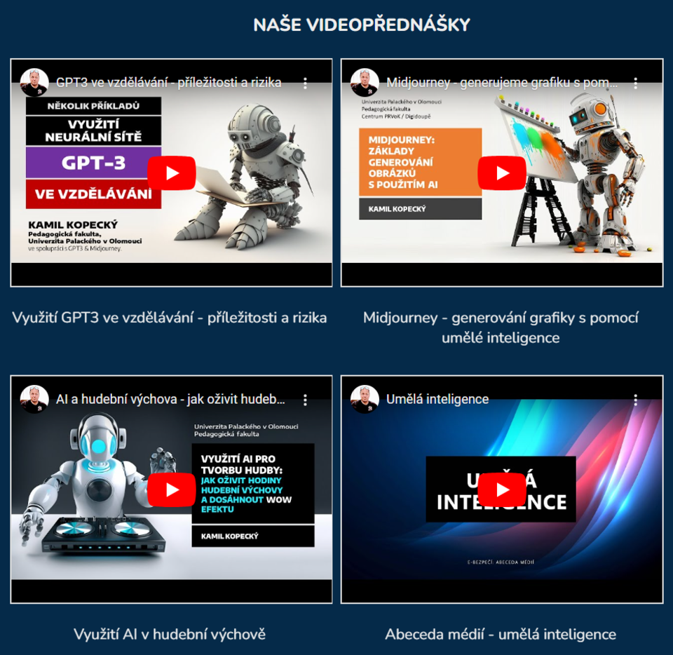 Web naleznete na adrese: https://ai.e-bezpeci.cz či https://ai.upol.cz.
